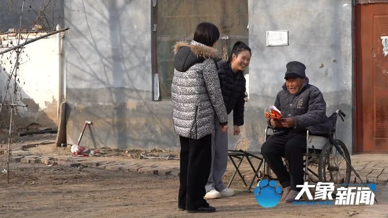 车进不去,她拎着大包小包一路小跑。一进门就像回自个儿亲戚家,用当地方言打招呼:“爷、奶,恁儿、恁儿媳托俺给恁送吃的!”老两口看着满桌东西笑开了花。